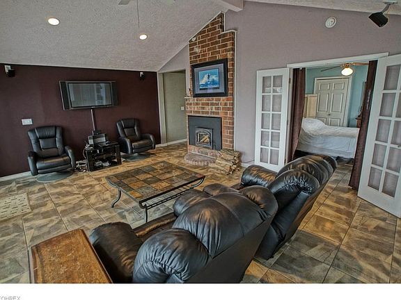 Affordable Lakefront! Enjoy Amazing Sunsets from the Updated Ranch on Lake Erie! The Ceramic Tile flooring flows through the home. The Granite Kitchen is enhanced by the Glass Backsplash. 2 Remodeled Baths, Jetted Tub, and Tile Shower! Newer Roof, Siding, Windows and Electrical. Open Floor Plan. Dining Room/Family Room with Fireplace leads to the Great Room with Fireplace and Lake Views. The Sliding Doors feature Between-glass Blinds. Relax on the Deck and listen to the waves. The stairway will take you to the Lake!