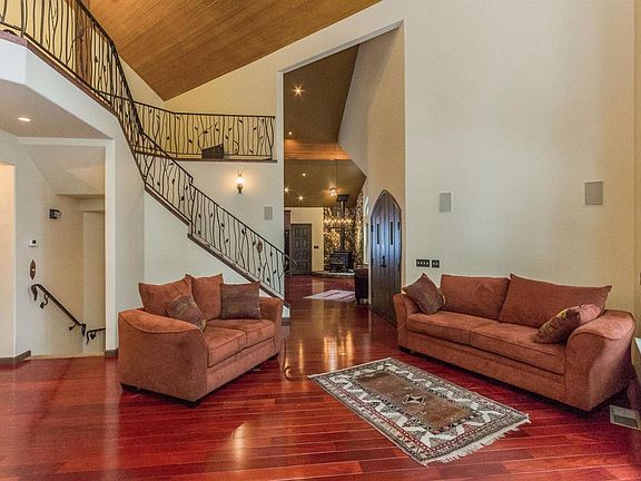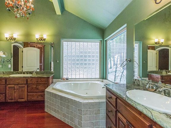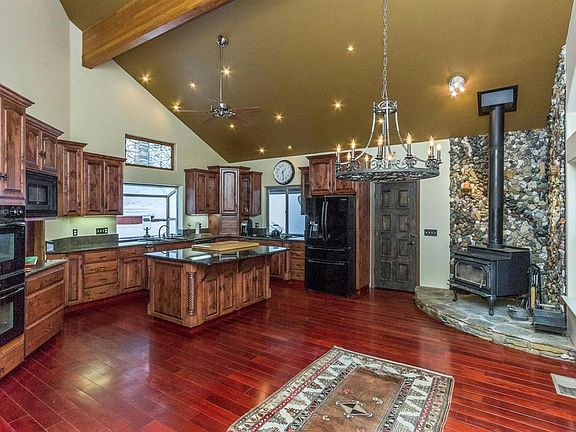 This luxurious custom built home has all of the amenities you could ask for! Located on a 1.7acre lot in the Ridge Top Subdivision, you will certainly enjoy filter sunset through the trees on the large front deck, and/or privacy on the rear deck. This special home boasts a gorgeous and functional kitchen with granite counters, Bosch appliances, and 5 burner gas Jenn Air stovetop. The adjoining dining room is warmed by a wood stove and highlights a special mosaic rock hearth. Patagonian Rosewood flooring is used throughout the main living area. The living room features massive real-rock gas fireplace, floor to ceiling windows bringing the outside in, and a sweeping grand iron staircase. On the main level you will find a guest bedroom and bath, and one of two master bedrooms. Upstairs is a large loft area and second master suite with a beautiful bathroom with spa tub and large picture window. The lowest level is where you will find the laundry room and stunning 2,000 bottle wine cellar.