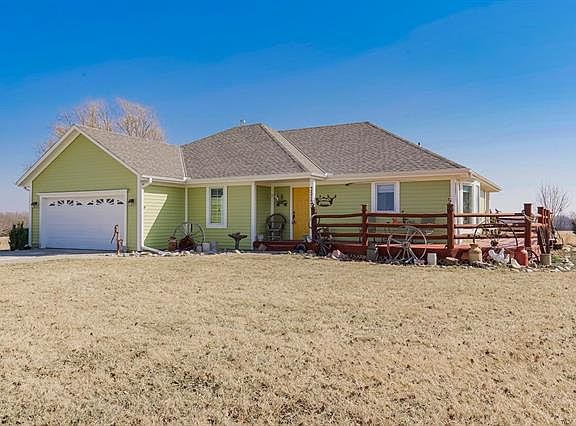 *THIS ONE WON'T LAST LONG*IMMACULATE ALL ELECTRIC RANCH HOME ON BLACKTOP W/5 ACRES & NEWER 40X60 SHOP/OUTBUILDING/BARN*OUTBUILDING HAS CONCRETE FLR & ELECTRICITY*HOME & PROPERTY ARE VERY WELL CARED FOR*AWESOME WRAP AROUND DECK IS PARTIALLY COVERED & HAS GREAT VIEWS OF SUNRISES & SUNSETS*NICE PATIO AREA OUT BACK*SMALL KOI POND/WATER FEATURE OFF SIDE DECK*NOTHING LEFT TO DO BUT MOVE IN AS THIS HOME HAS ALREADY HAD A NEW EXTERIOR PAINT JOB, NEW ROOF IN 2021 + NEW GUTTERS IN 2020*WOOD BURNING FIREPLACE IN LIVING RM*FULL BASEMENT IS READY FOR YOUR OWN FINISHES*ALL APPLIANCES STAY, INCLUDING WASHER , DRYER & KITCHEN REFRIGERATOR*MASTER BATH W/DOUBLE VANITY & NEWER WALK IN SHOWER W/HIGH CEILINGS*THIS IS A CLEAN HOME & PROPERTY WITH GREAT BLACKTOP LOCATION & EASY ACCESS TO 4 LANE 69 HWY*GREAT PROPERTY FOR A HOBBY FARM OR A COUPLE OF HORSES OR COWS*