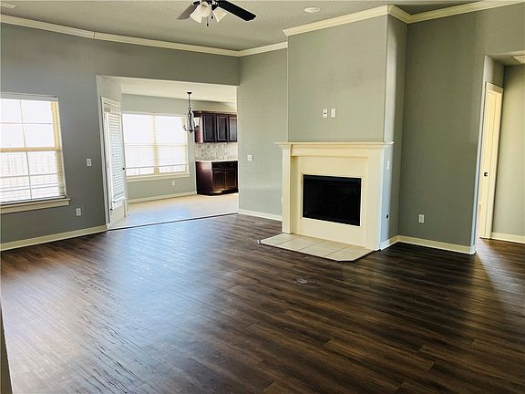 You'll love this upgraded, move-in ready home in Grand Valley Subdivision. It's ideally located on a cul-de-sac! This open floorplan home has been pre-inspected and has new LPV flooring and fresh paint throughout. Other great features include granite in kitchen and baths, crown molding, high ceilings, stainless steel appliances, kitchen closet pantry, gas log fireplace with wall switch, split bedroom layout, double closets and sinks in MBR, jetted master tub with separate shower, covered back patio, 2" faux wood blinds, newly freshened landscaping, beautiful lawn, and fenced backyard. Fridge, washer and dryer to convey. Just move in your furniture and you're all set! Enjoy the neighborhood park, plus you'll be within walking/biking distance to Willie George Park, Lakeside Junior High, Don Tyson School of Innovation and 5 minutes from the Lake Fayetteville Trailhead of the Razorback Greenway. Selling agent is related to seller. Come see this beautiful home today and make it yours.