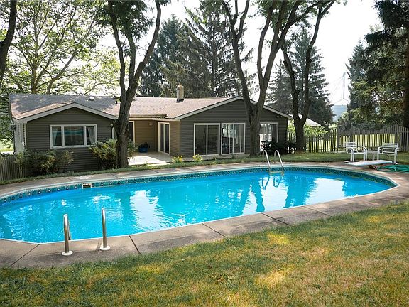 A secluded country-feel property but just a few minutes into Skaneateles village and with a heated pool! This home offers four bedrooms, several storage rooms, two living rooms, a newer furnace and upgrades to flooring. The main level has an open feel with a four season heated sunroom surrounded by sliding doors overlooking the pool. The primary bed and bath are located on the main level. A large living/family room opens via three sliding doors to the front deck for summer breezes. The newer kitchen has updated appliances and granite surfaces. The lower entry level has three bedrooms, a laundry room and another full bath. The furnace and hot water heater are five years old. Heated pool professionally cared for and ready for opening in the spring. All furnishings are also negotiable! Close to the Skaneateles Conservation area for hiking and there's a 2-stall horse barn not used in years and offered as-is! Come see this Skaneateles school district home. Showings start on Friday, 3 Nov.