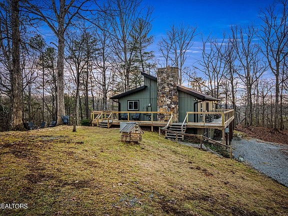 Direct year-round views of Mt. LeConte from the hot tub. Nestled on over 7 acres of a private mountain setting, this 2023 newly remodeled, privately gated lodge boasts a blend of mountain comfort and modern aesthetic. Stepping inside you will be greeted by the brand new, hand selected furniture that was thoughtfully designed for you and/or your guests with a wood burning fireplace as the focal point. In addition, this property comes with its own generator as a great backup plan for the winter months. This property is inviting, unique, and conveniently located. It is perfect for the families who appreciate a sense of privacy all while being within a short drive from the popular tourism and attractions the Smoky Mountains has to offer. The outdoor space and wrap around deck that can be accessed by each bedroom will provide you and/or your guests endless entertainment and convenience while enjoying mountain and pasture views. You won't have to leave! Overall, this mountain lodge is a unique escape that is an experience in itself. All of the thoughtful touches and amenities are perfect for this property to be used as an overnight rental, vacation home, or even a primary residence! Enhance your portfolio and scale your wealth with a property like this one in the Smokies that does not come around often. [Drone photography used]