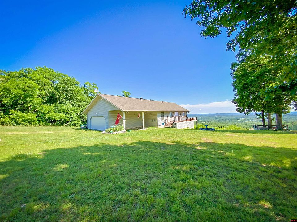 This 2 bedroom 2 bath home sits off the Hwy on 125 only 9 miles to the Marina. Perfect vacation home with stellar lake views from the large windows or deck. Small unfinished walk out basement. Vaulted ceilings in the living room/dining room overlooking panoramic views. This home sits on 9.35 acres m/l with generator, garage, and carport for your boat.