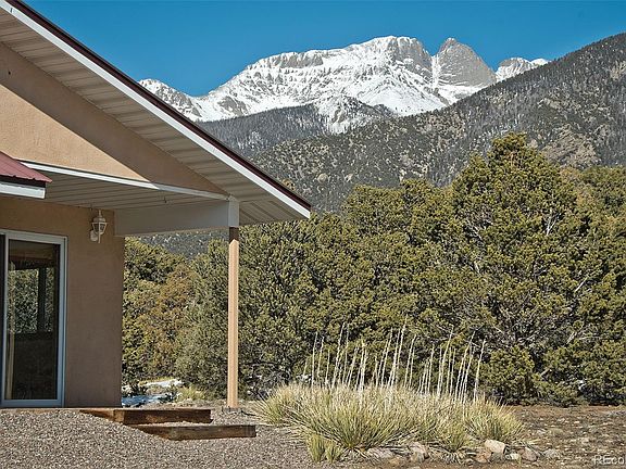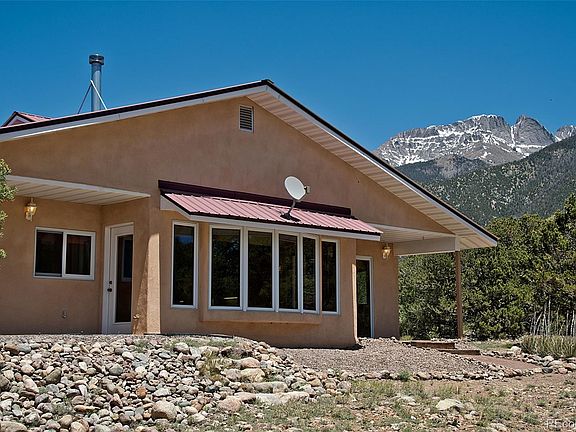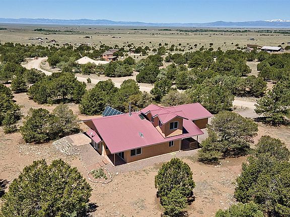 Escape to a world of peace & natural beauty in this 3BD/1.5BA home, perfectly situated to capture stunning views of the natural surroundings - ideal for retreat & relaxation. It offers 1732sf of bright, open-concept living w/ fabulous mtn & valley views. New interior paint & remodeled bathroom. The large living/dining area opens seamlessly onto 2 back terraces. Located on 1.41 secluded acres near Cottonwood Creek & greenbelt trails, Ziggurat, Liberty Trail. Main level has durable SW-style tiles w/ radiant in-floor heat. Efficient solar-thermal collector panels heat both hydronic HVAC & domestic hot water. Quickly unload the car, only steps to the kitchen from oversized garage. The kitchen features ample custom-wood cabinets, 2 pantries (pull-out & closet)), tile-patterned counters w/ built-in desk & peninsula. Large great room has dining & living areas, built-in bookshelves, enameled wood stove w/ local stone facing, big bay window & long banquette - curl up w/ a book, contemplate the outdoors, or just rest & relax. Entertain or dine al fresco on separate backyard terraces, more opportunity to enjoy the natural beauty of the pinon-juniper woodlands for which the Baca is famous. Off the great room are the primary & guest bedrooms, w/ lots of closet space. The bright & newly-remodeled 4-piece bath has skylight, quartz vanity, custom-tiled shower/bath & space for linen cabinet. Climb the stairs, where the pvt 2nd level awaits use as office/den/studio/meditation/exercise/yoga/3rd bedroom. Views on 3 sides, intersecting vaulted ceilings & stained-glass pendants. Additional storage in the laundry/utility room & oversized garage. Lovely accents throughout: ceramic sconces, exposed beams, T&G ceilings, SW-style tile. Stucco exterior, metal roof & buried propane tank. 15 minutes to town of Crestone & amenities. Crestone has sunny days, dark skies, 2 local schools & growing community. Call today for more information or to schedule a tour - your mountain refuge awaits.
