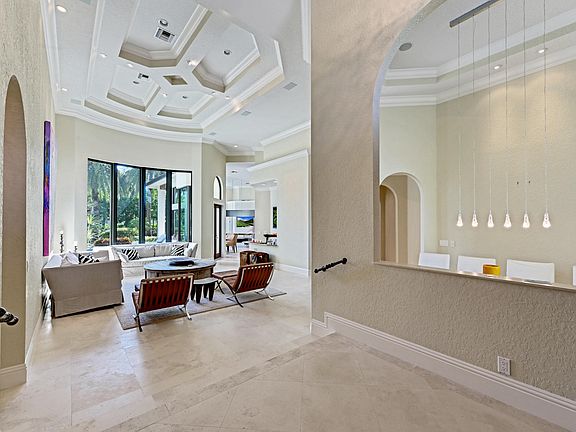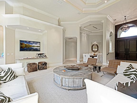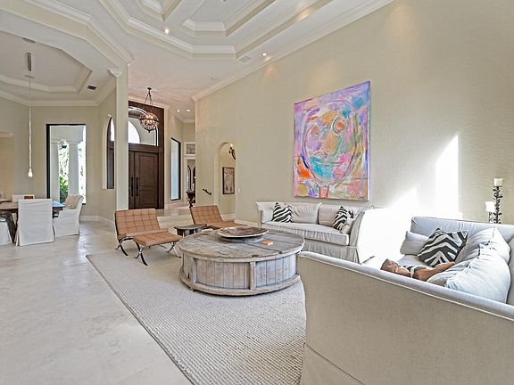 This custom one story home sits on a private lot with superb long lake views. A luxurious estate home with 5 ensuite bedrooms plus office and 2 half baths . Fully furnished and ready to move in. Hurricane windows and doors throughout ,Natural gas for cooking , hot water and pool heater. Gorgeous Saturnia marble floors,mosaic tiles,custom and elegant fixtures throughout. (exclusions are dining room fixture, art, accessories and personal items). A large marble paver driveway with an exceptional 3 car garage with finished floors, custom built in rack system and amazing lighting!