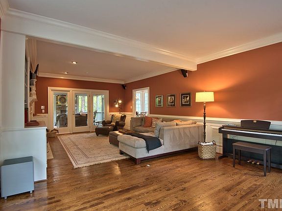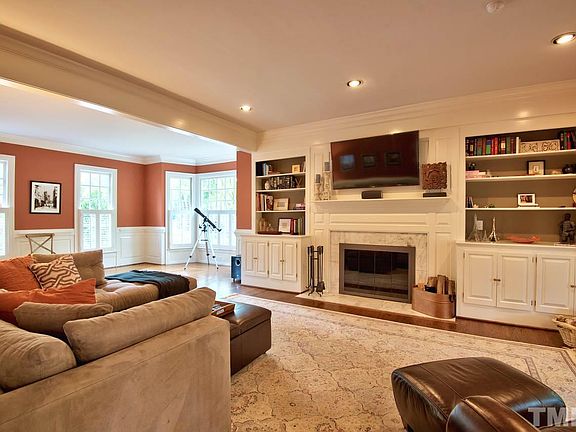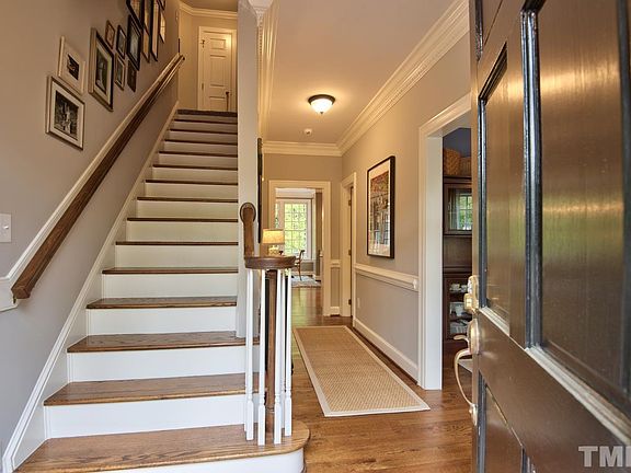 Exceptional 5 bedroom home on corner lot in New Hope Valley. Beautifully designed floor plan that allows easy movement from one room to the next. Screened porch with a fireplace that leads to the patio. A first floor bedroom and bath that is perfect for guests, au pair, or a first level office. Second floor bonus room easily accessed with separate steps. Spectacularly newly landscaped front yard with fire pit. Allows for expanded outdoor living for the entire year. New exterior/interior paint and carpet.