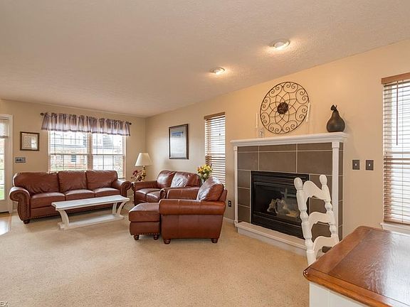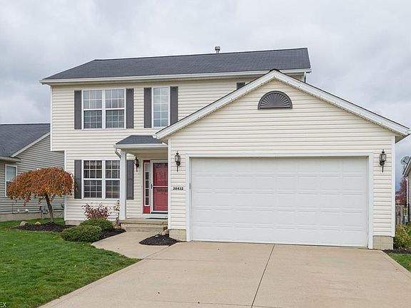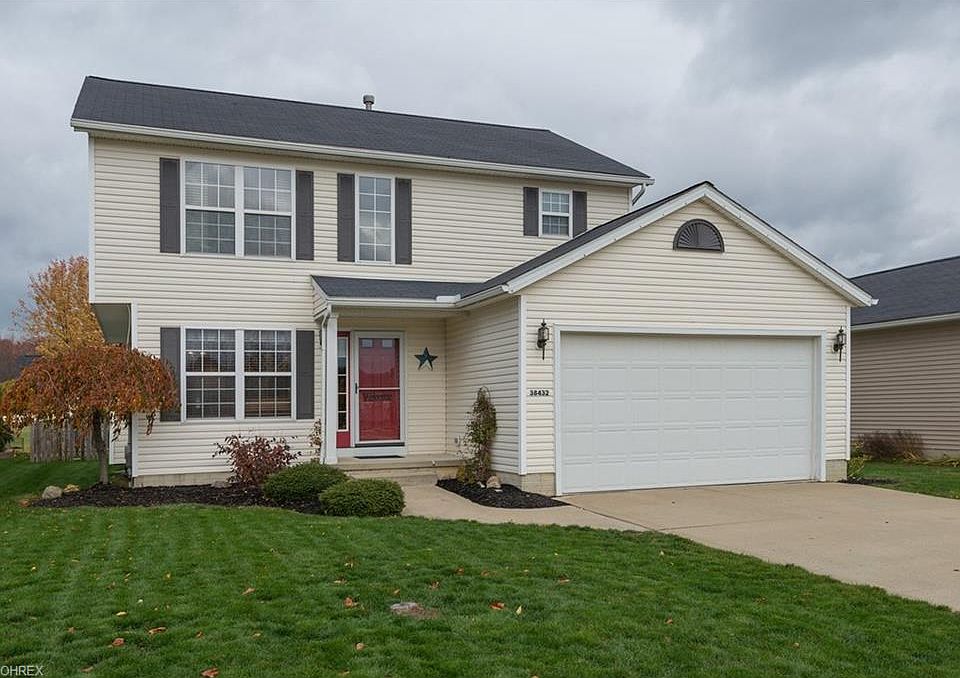 Don't miss out this immaculate 3 bedroom 2.5 bath home in North Ridgeville's most popular community, Meadow Lakes! The updated kitchen is clean and crisp with white cabinets, tile backsplash, updated lighting, and a breakfast bar for extra seating. From the dinette a beautiful archway leads to the sunroom with window seat. Off of the sunroom is access that leads to a deck and large fenced-in backyard. Back indoors the family room has a beautiful tile fireplace and plenty of room for entertaining. Upstairs a generous master bedroom with large walk-in closet and private bath with double bowl sinks. All of the bedrooms are a nice size and have ceiling fans for extra comfort. Downstairs, the unfinished basement is a perfect play area or can be finished down the road for extra space. Neutral decor highlights the open floorplan. Come see today!