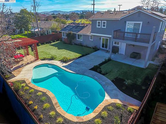 WOW! Beautiful Livermore Family Home with Spectacular Entertainers Backyard! This home is fully loaded with 5 bedrooms including private upstairs Master Suite with connected Living Room/Office or 5th Bedroom! Tastefully Updated throughout with SS Appliances, Quartz Counters and beautiful wood flooring. Downstairs Bedrooms include Small Suite with full Bath. The Backyard is perfect for Entertaining with Solar Heated Fountain Pool, Artificial Grass Area and Entertainment with Flat Screen TV. PAID IN FULL Solar Energy Panels! Walk to Downtown and Schools. Don't Miss this One! Open Saturday and Sunday!