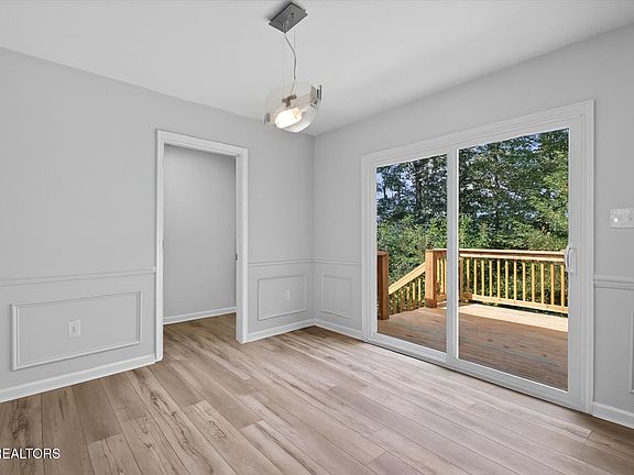 Step inside from the welcoming covered front porch into a bright, light-filled living room that flows seamlessly into the dining area and updated kitchen. The kitchen is equipped with stainless steel appliances, ample cabinet space, and connects directly to the dining room, perfect for entertaining or family meals. Just off the dining area, you'll find an expansive brand new deck overlooking beautiful wooded views, offering a private outdoor space to relax or entertain.