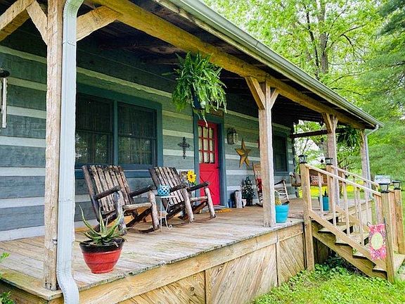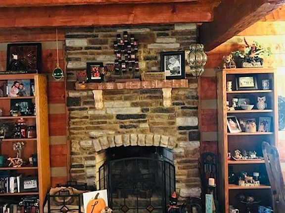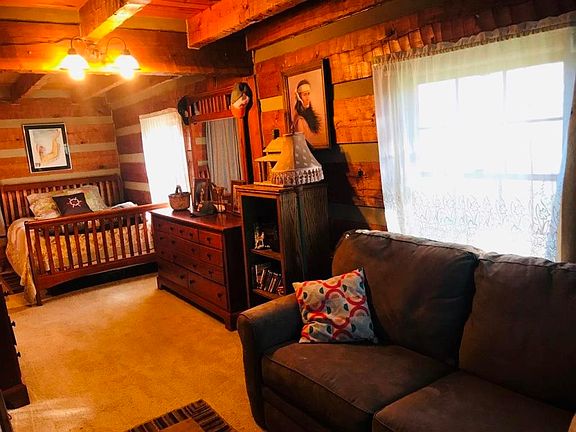 The privacy, quiet & peace of country living, but only minutes from town! Many improvements have been made through the years to this comfortable, loved log home on 5 beautiful acres. Surrounded by open farmland this 4 bdrm, 3 bath home boasts a beautiful stone fireplace, & w/some minor adjustments, the lower level would be a perfect in-law suite! Cozy, yet spacious. Wonderful front porch, the swing stays w/the house! Large bonus room, back porch, huge pantry, beautiful vaulted ceilings. Pond, trees, barn!