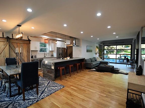 14month rehab.ALL NEW central air,Hardie siding,roof,hardwood,windows,doors,kitchen cabinets,tile,concrete countertops,totally new bathroom,front porch and 104sqft addition with glass garage door leading out onto deck!This house is unique,artistic,completely turnkey! Enjoy this half acre lot from the deck overlooking mostly private fenced parklike