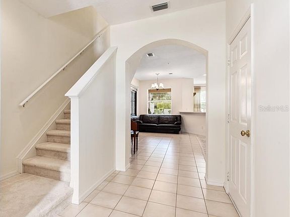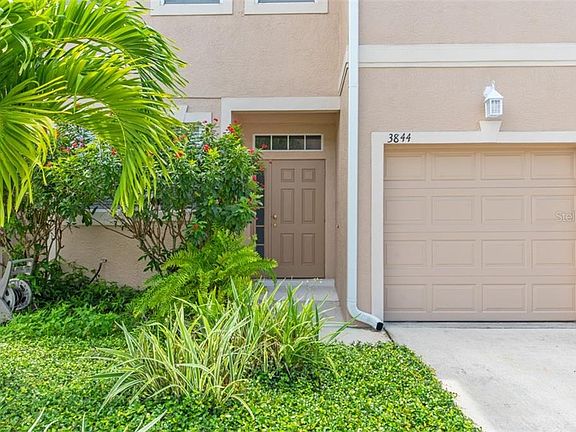 Enjoy maintenance-free living in the gated community of Parkstone in this charming 3-bedroom, 2.5-bath townhome with an attached 1-car garage. The first floor features an open layout with tile flooring, a powder bath, and a spacious living and dining area that flows seamlessly to the kitchen. Large sliders from the kitchen open to the private screened lanai with newer ceramic tile and peaceful water views with no rear neighbors. The kitchen offers a roomy pantry closet, 42-inch cabinets, and updated appliances. Three bedrooms, two bathrooms, and a laundry closet are located upstairs and include a master suite with a walk-in closet and an en-suite bath with a separate shower and garden tub. Recent updates include a freshly painted interior, new carpet, HVAC unit, and roof, making this desirable home truly move-in ready. The heated community pool offers year-round enjoyment and is conveniently located just a short stroll from your new front door.