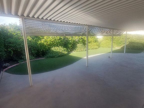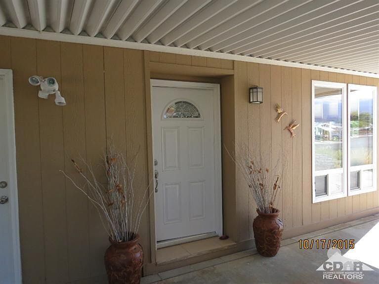 Palm Desert Greens has low HOA fees of $326 a month that includes 24 hr guard at gate, trash, cable,TV, WI-FI, Internet 18 hole golf clubhouse pro shop restaurant pickle ball swimming pools and spas. What is better than that is that this home was renovated from top to bottom when seller bought it. There are custom duel pane low-e vinyl windows, and earthquake bracing on the exterior. The entire interior was redone with 5/8 sheet rock. Nice size kitchen with Maple kitchen cabinets, high end custom granite counter tops.Beautiful spacious kitchen with granite counters. Large dining and wet bar in kitchen. Bathroom has granite counters with beautiful shower tile. New carpet with tile flooring through out the home. The front and back yard porch is covered from front to back beautiful overhead awning. There is wonderful mature landscaping in the back as well. The front has a covered patio as well for those summer nights. There is a nice golf cart garage attached to the home. The home has new exterior paint. Your clients will not be disappointed in the wonderful home that feels new!