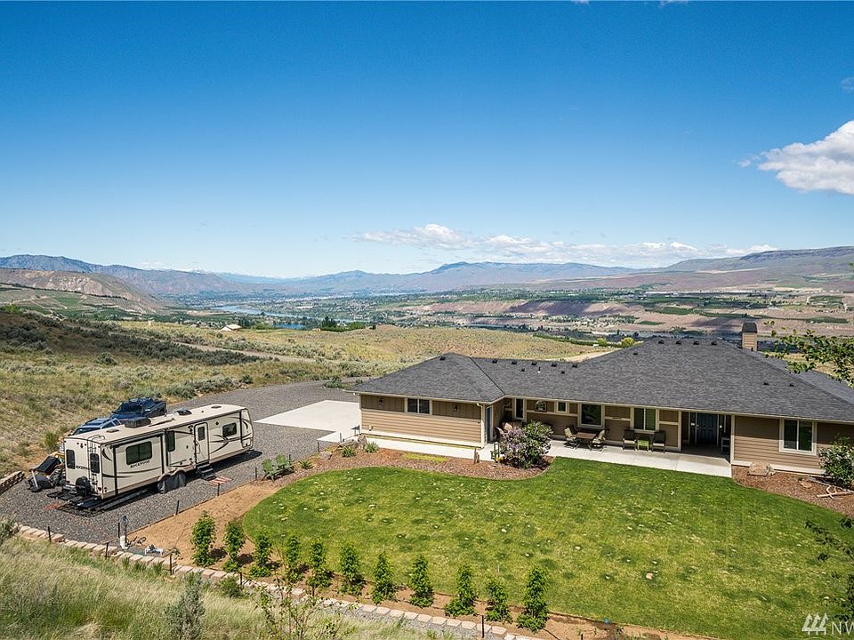 20 acre Estate with expansive Mountain, River & Valley views! Stunning great room with fireplace, extensive use of white oak floors and huge view deck. Chef's kitchen with slab granite, Center Island & custom cabinets. Main floor master with, crown molding, private deck, double vanities & walk-in closet. Main floor office, half bath & laundry room. Daylight basement with huge family room, three bedrooms, bath and two storage rooms. 28 X 28 garage, RV parking with 50 AMP hook up and dump.