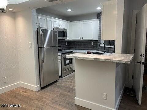 Totally remolded 2 bedroom 2 bath second floor unit with open and great room with fireplace, vaulted ceilings, & separate dining area off the kitchen with all new SS appliances. Full length balcony off living room and downstairs bedroom. Inside laundry and guest bath complete the lower level. Master bedroom is located upstairs with a private balcony, master bath and a large walk-in closet. This gated complex features a great pool & spa area, fitness center, dog run, plenty of guest parking and has great access to SR51 and Loop 101.