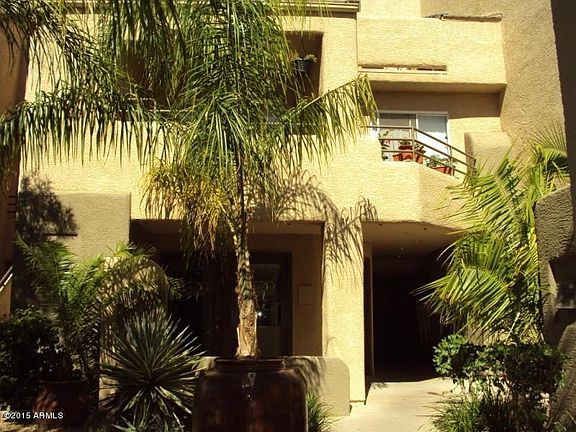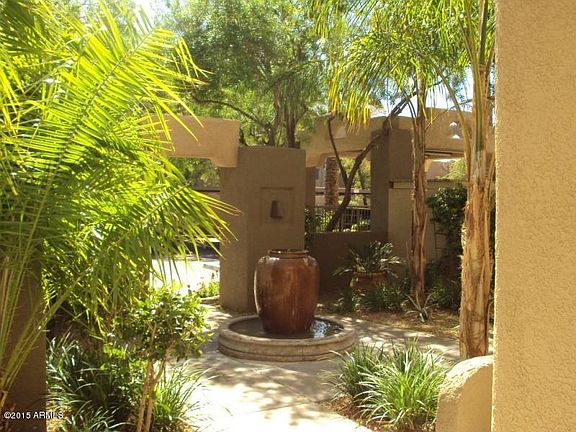 Enjoy the quiet in this quaint, charming GATED community! Newly remodeled kitchen, with all appliances, small breakfast bar and a formal dining area. Washer/dryer too! Soaring ceilings with a loft open to second floor gives this home a spacious feel. Cozy fireplace with tile, skylights, lots of windows, two patios for entertaining are a few of the great features of this home. Master bedroom and private bath are upstairs. Guest bedroom downstairs can be used for an office. Unfurnished unit. Enjoy the community pool, spa and fitness center. Location! This community is convenient to downtown, Desert Ridge and the 101.