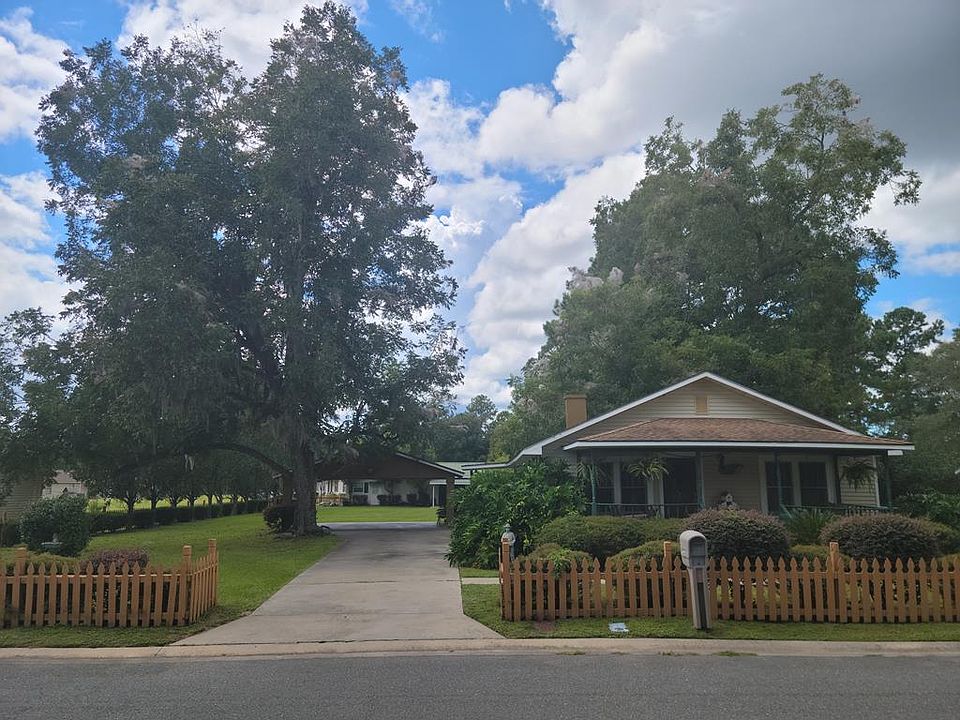 This MOVE-IN READY bungalow-style home is situated on a shady lot in a great location in Jamestown. You can immediately begin enjoying all it has to offer incl a great school district. Outback is the 24'x40' workshop with a dedicated office and utility room - perfect if you have a home-based business. There's no shortage of entertainment areas either! The current owner enjoyed entertaining family/friends underneath the double carport w/concrete drive through, and the special grilling station with stool seating. For the outdoor sportsman, you'll appreciate the skinning rack and outdoor sink for preparing and cooking your deer, fish, etc. Enjoy morning coffee on your covered front porch complete with 2 swings. The partial Gotham fence adds a certain charm; the sprinkler systems keeps landscaping pretty, and dusk to dawn lighting is a bonus. The matching small building houses a tanning bed, and an extra room. There are 2 producing pecan trees. A must see!