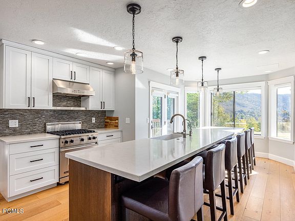 This beautifully renovated home in the heart of Jeremy Ranch is where modern updates meet cozy mountain charm. Thoughtfully designed and situated on an oversized lot, this home offers an idyllic blend of luxury upgrades and functionality in one of Park City's most desirable neighborhoods. Features include vaulted ceilings, East facing living spaces with generous natural light, and a stunning stacked stone fireplace, working in harmony to create a warm and inviting atmosphere. The completely updated kitchen is equipped with quartz countertops, Viking appliances, custom cabinetry, recessed LED and custom pendant lighting, and an oversized center island with bar seating for six. Recently installed engineered hardwood floors on the main and upper floors provide uniformity throughout, while the lower level offers a great flex space, well suited for a home gym, den, or guest quarters. On the upper level, a generously sized primary suite offers just enough separation from secondary bedrooms, and includes a Euro glass enclosed shower with custom tile surround and an oversized soaker tub. Outside, enjoy the spacious yard and back deck with mature landscaping and Aspen trees, where you can breathe in that fresh mountain air with views of the Jeremy Ranch golf course and surrounding hillsides. Ideally located near hiking and biking trails in one of the quietest locales within Jeremy Ranch, this home is only 12 minutes to the slopes at Deer Valley as accessed by the Jordanelle Gondola, and just 15 minutes from Old Town Park City's dining and shopping. The Salt Lake Valley is within a 15 minute drive, offering a plethora of metropolitan amenities, including access to the newly recreated and world renowned Salt Lake City International Airport. Your Wasatch Back haven awaits.