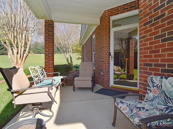 Single story townhome nestled between Mint Hill & Matthews. Ideal location!! Minutes to 485 & only 13 miles to uptown Charlotte! This end unit welcomes you with a side covered entry, w/ room to relax outdoors. Enter into an open concept LRM/DRM w/vaulted ceiling, gas fireplace & large windows. A home office w/ French doors can easily be BRM 3, but perfect flex space as it is. The kitchen opens to the LRM/DRM w/ a breakfast bar. Granite counters, lots of cabinets & counter space w/ room for an island cart as well. The primary bedroom is spacious w/ a trey ceiling, large windows, WIC, and an en'suite including a soaker tub, stall shower & double vanity. The secondary bedroom is spacious with a WIC and direct access to a full bath. Enjoy the outdoors all year long with both a sunroom & an outdoor patio. A storage closet off the patio is great for small items, but no need to store lawn equipment! Lawn maintenance is included in the HOA which means the two car garage, is for your cars!