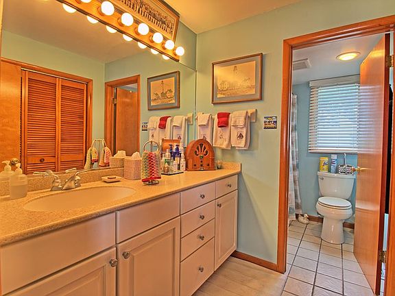 Three story, upside down style home offering sensational back bay views and western exposure. Home is three blocks to the fabulous 38th Street beach, walking distance to town and one block to the best tennis courts on the island as well as a playground and basketball court. First floor offers three bedrooms, one bath, laundry area and two car attached garage. The unique second floor has a vaulted great room with fireplace, wet bar with ice maker, maple floors with access to an expansive composite deck offering beautiful water views. The main living area is sun filled as a result of the exposure and ample windows. The center of the home has a large kitchen with center island perfect for entertaining. There is a dining area and family room adjacent to the kitchen with direct access to the three additional decks. The third floor offers the master bedroom with two walk-in closets, private deck and master bath with great shower with steam. Property sold partially furnished per inventory list. The home is owner occupied and easy to show with appointment.