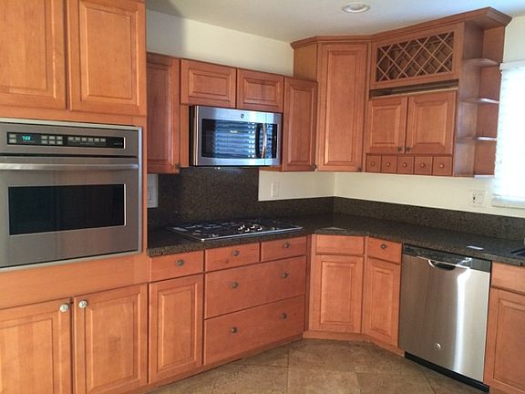 Fabulous family upgraded home in outstanding neighborhood on large lot, great kitchen w/maple cabinets, stainless steel appliance, granite counter tops, living room w/stone fireplace, crown molding in living room, entry & dining area, Travertine in entry, dinning area and kitchen, master bedrm 1st floor w/French doors to patio, 3 bedrms upstairs, baths are updated, large patio with fenced pool, no neighbors behind home, extra open space area beyond pool 4 garden or buyers idea, no Mello Roos or HOA fees. New appliances are 5 burner gas stove top, microwave, and dishwasher. Ceiling fans in upstairs bedrooms, dining area has French doors to patio, most windows dual pane, freshly painted interior, interior of garage freshly painted. Great clean home for buyer.
