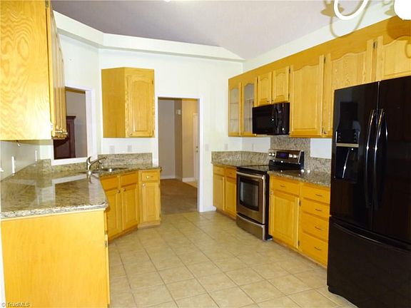 One level home in Winston Salem! Kitchen w/ granite countertops, other Updates include new 30 yr roof, new garage door opener, hvac 2011, Master br w/ WIC & bay window, master bath with jetted tub/ Separate shower, Living room w/ cozy gas log fireplace, split bedroom floorplan, covered back brick patio area, fenced patio, kio pond, storage building. Located minutes from downtown Winston Salem.