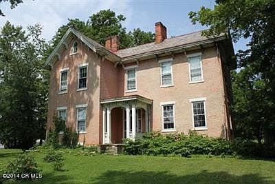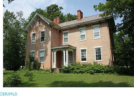 All Brick Historical Home on 3 acres! Originally built by settler Zenus Jackson and still owned by his ancestors, was once part of the Underground Railroad. Attractive Brick two story still has it's original charm and features large rooms and high ceilings, Cherry hardwood floors and walnut woodwork throughout, a Parlor with built-in bookcases and a large Dining Room with corner cupboard! A half bath is off the Dining Room. Solidly built with 18 inch walls, thick wood floors and casings, and a slate roof. With a little cosmetic work this home would be awesome. 1st floor Bedroom and another small Bedroom or office. Upstairs has a Master Bedroom with another BR or large dressing room attached to it, and a 3rd Bedroom and a full bath. 1.5 car attached, and 2-3 car detached garages!