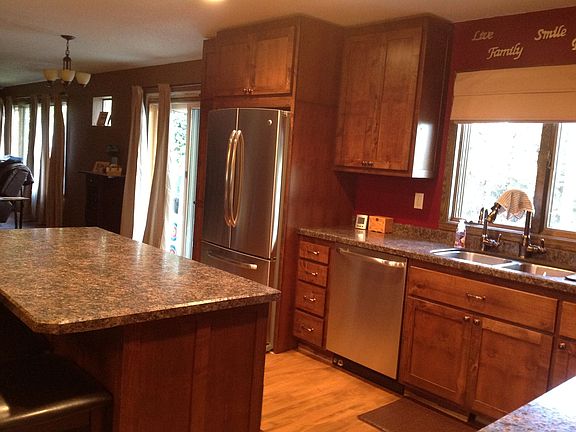 Large rambler in beautiful neighborhood just minutes from town. Completely remodeled home includes stainless steel appliances, maple hardwood floors, custom alder cabinets and 2 master suites and 2 additional bedrooms on main level. Basement includes one more bedroom, bathroom, wet bar and large family room with surround sound. Two fireplaces, one on main level and one in basement. 3 of the 4 bathrooms updated with Corian counter tops, custom cabinets and tile floors. Tons of storage. Gorgeous lot surrounded by mature trees, landscaping, 2 decks, front patio and tree house. Also new in 2009 - hot water heater, roof, sump pumps - including backups and new duct work throughout. Home has central air.