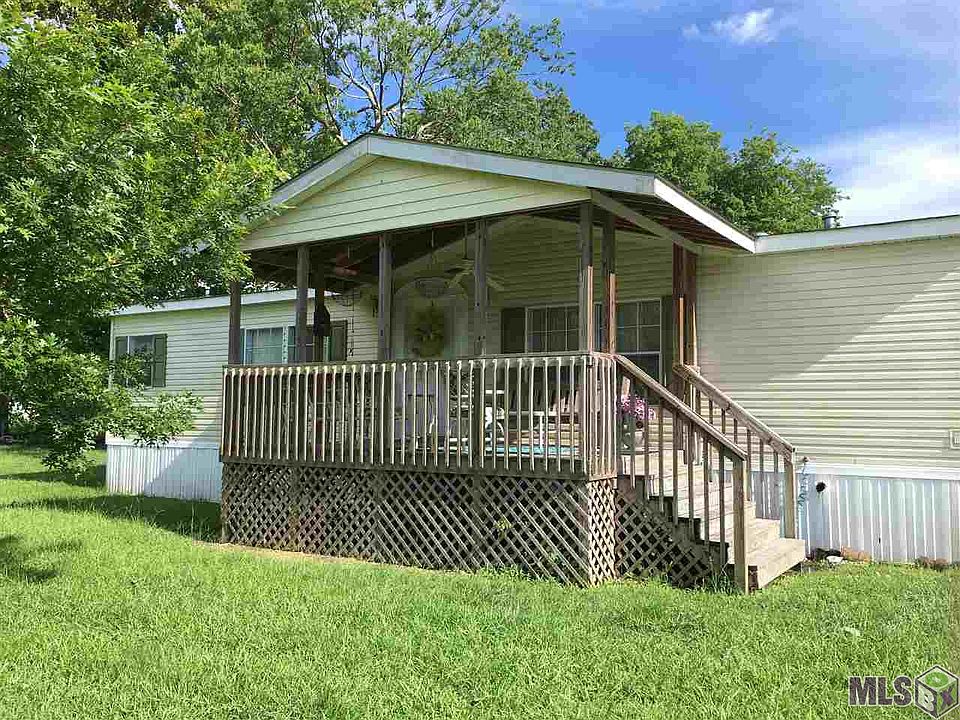 Nice 3/4 acre lot with spacious double wide including workshop. Spacious open living room and kitchen/dining combo! Big master bedroom includes walk-in closet. The master bedroom also leads into luxurious bathroom with large garden tub and separate, walk-in shower and vanity. Includes front and back covered porches, perfect for the summer heat!