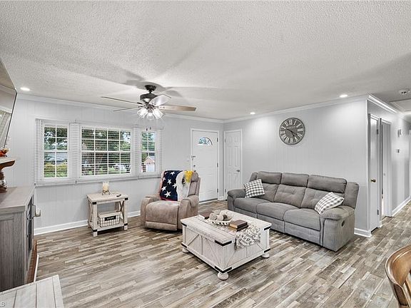 Newer vinyl front porchFresh paintUpdated light fixturesFenced backyardNearly half an acreStylish shiplap accent wallAll-new flooring