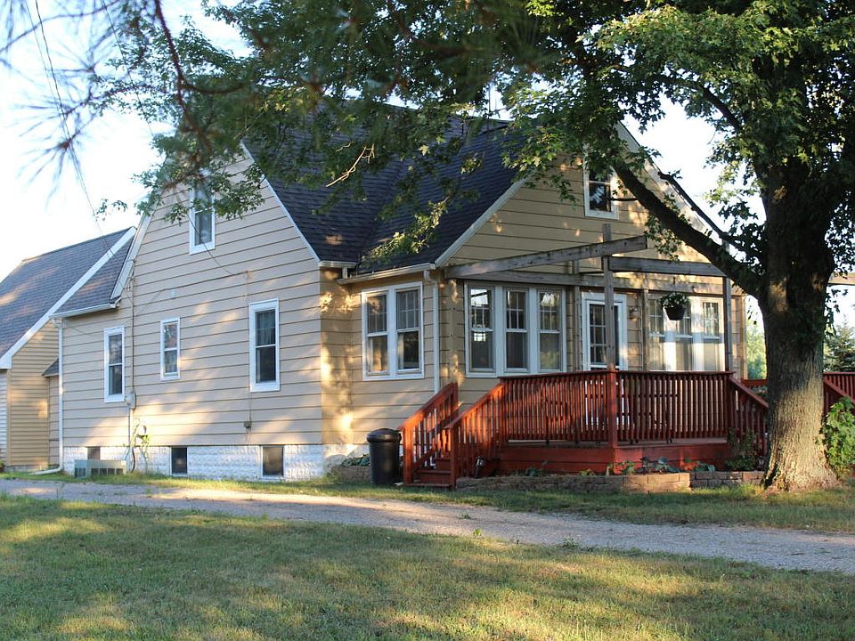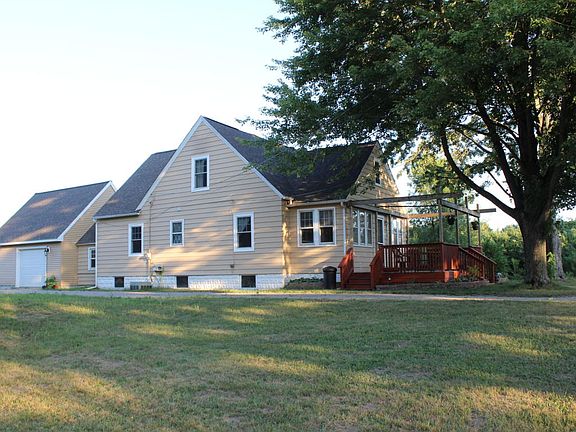 Country living not far from town! This farm house has the flare of yesteryear, but is modern at the same time, wood floors upstairs and down with an updated eat in kitchen, open concept let's natural light shine in, beginning with the entrance, a spacious front porch surrounded by windows brings you into the living room with beautiful wide wood staircase, 2 bedroom upstairs with 1/2 bath with built ins, large 12x24 area between bedrooms that could be used as an office or family room, a. Downstairs bath has a jet whirlpool tub that's tiled with block glass, just a few steps away off the kitchen is main floor laundry, with new window and wood plank ceilings that lead you out to the new 21x24 garage that was added on in 2016, WIF enhanced garage door opener, access the garage from either side