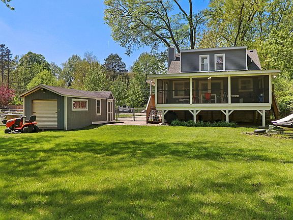 The 3 bedroom Cape Cod style home with a front porch is a charming and classic house design that is sure to catch the eye. The updated kitchen with a large eat-in area is a perfect place for meal prep and entertaining. With a bedroom located on the first floor and two full bathrooms, the home is ideal for those seeking a single-floor living. On the second floor, there are two additional bedrooms, providing plenty of space for a growing family or accommodating visitors. The property also includes two sheds, providing ample storage space for all your belongings. Located on 76 ft. of channel front to Nippersink Lake, this home offers a peaceful waterfront lifestyle and easy access by boat to the Chain O' Lakes. The huge Screened deck facing the water is perfect for enjoying the outdoors and provides a relaxing space to take in the serene surroundings. Updates in 2023 include new furnace, light fixtures, ceiling fans, shower and freshly painted inside (except the kitchen). Overall, this home offers a comfortable and tranquil space that is perfect for those who enjoy the beauty of nature. Schedule your private showing today.