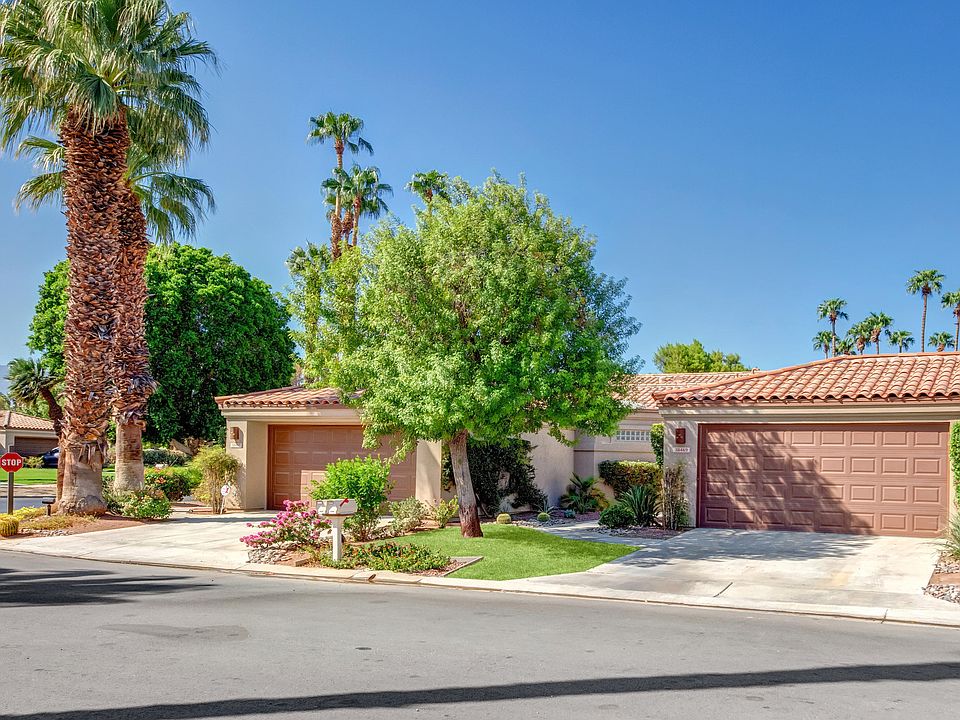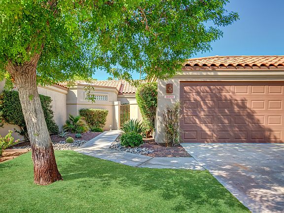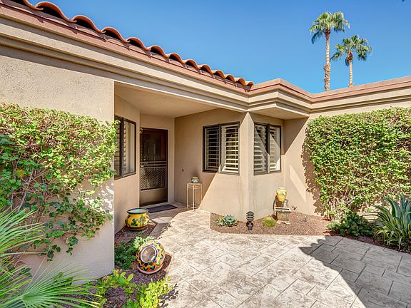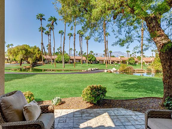 Beautiful single-level single-story 3 bedroom 3 bathroom condo situated on the 7th green of the Challenge Golf Course at Palm Valley Country Club. The Mesquite Floor-plan offers expansive golf course and mountain views, a front private courtyard, 12 foot ceilings, hardwood and laminate flooring and a Two-car attached garage. This condo is light and bright with a spacious gourmet kitchen perfect for any chef. The kitchen features granite counter tops, stainless steel appliances, bar seating and a large pantry. The Master Bedroom captures the golf course views with a large glass slider for patio access and has high ceilings, plus en-suite Master Bathroom with dual sinks and a granite walk in shower. Bedroom 2 and 3 have vaulted ceilings and also offer en-suite bathrooms. Palm Valley Country Club known for its 5 Star Tennis and Executive Golf Course also offers a fitness center, Olympic Size pool and additional pools within the gated community. The HOA includes all gardening, cable & Internet, trash and limited structural insurance.
