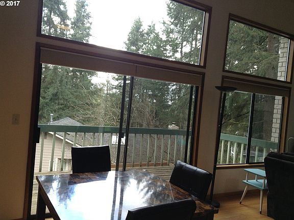 This Charming,4 bedroom/2baths, 2022sqf."Light and Bright" SW hills, very quiet area, surrounded by beautiful trees; Spacious living room, dining area with deck access, large windows, vaulted ceilings, sky light, wood floors, tile floors in baths, and kitchen + counters; Master-Bedroom in the main level,3 bedrooms and family room with fire place in the lower level, carpeted, tree decks, appliances included, covered patio.