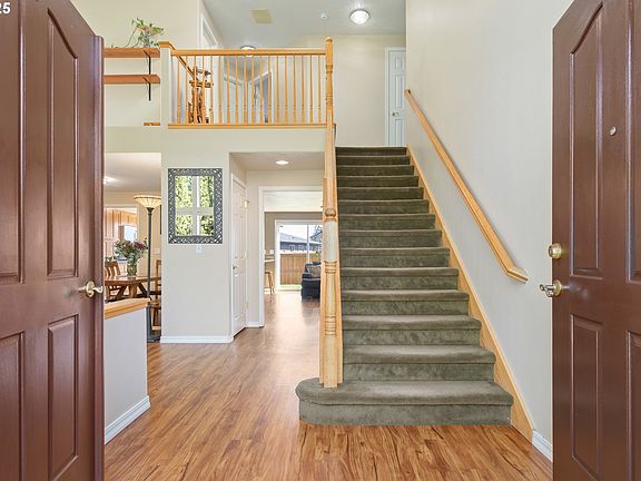 Tucked in a desirable Santa Clara neighborhood and directly across from Filbert Meadows Park, this well-cared-for home offers the perfect balance of comfort, style, and functionality. Fresh exterior paint enhances its curb appeal, while thoughtful updates throughout provide confidence and peace of mind for the future. The spacious kitchen features granite countertops, a breakfast bar, and stainless steel appliances—including a new Bosch dishwasher—and flows effortlessly into both the living and outdoor spaces, ideal for entertaining or everyday living. The floor plan includes four full bedrooms, a generous upstairs bonus room, and a secondary family room with vaulted ceilings and a cozy gas fireplace that creates a warm, inviting atmosphere. The oversized primary suite offers a large walk-in closet and an en suite bath with a soaking tub—perfect for those moments of extra "me time." Durable laminate wood flooring adds warmth to the main level, while a new high-efficiency gas furnace ensures year-round comfort. Step outside to a backyard built for relaxation and connection with nature. Enjoy raised garden beds, a fire-pit area, and the peaceful setting along quiet Spring Creek. One of the true highlights is the newly built, full-size sauna—your personal wellness retreat offering warmth, stress relief, and health benefits, right in your own backyard. Additional exterior features include full-size RV parking, a tool shed, and multiple lean-to storage options. Open House Saturday, 4/26 from 10 AM – 12 PM. Don’t miss this opportunity!