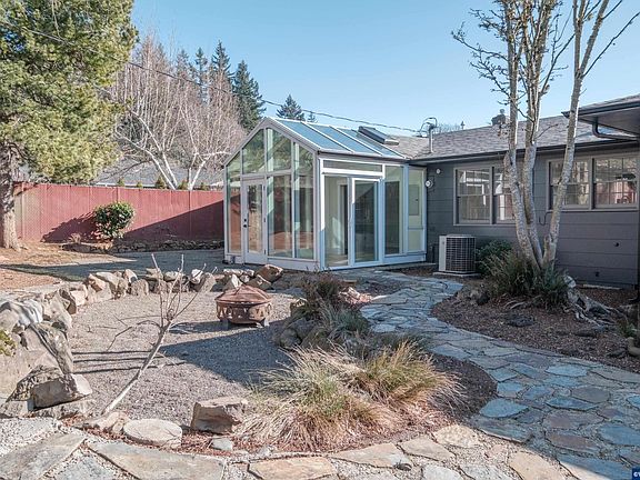 Lovely single level home in the heart of South Salem! Transferrable home warranty included. Beautifully updated inside & out along with newer plumbing & updated electrical. Primary on-suite with walk-in tile shower. Expansive private fenced backyard on almost 1/3 of an acre! Spacious sunroom off sunken living room for warm sunlight. Gas fireplace in FR and wood burning in LR. 3rd bedroom could be flex space for office or formal dining.