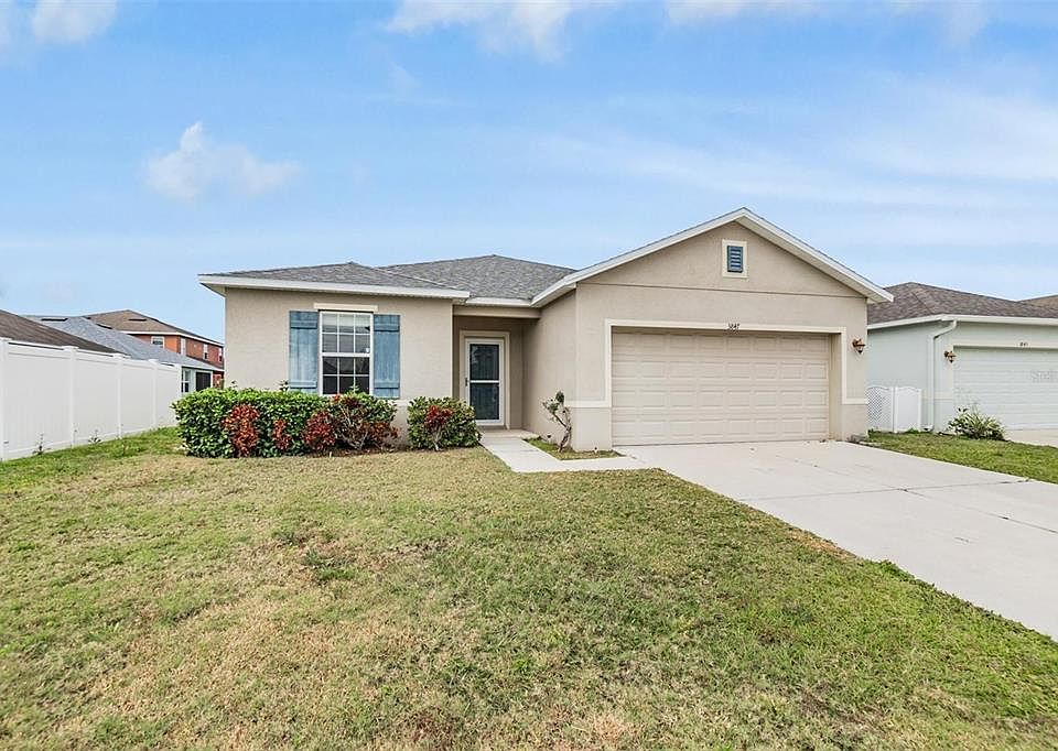 Don't miss this exceptional chance to become the proud owner of a splendid 4-bedroom, 2-bathroom block constructed waterfront home that shines with a fresh coat of INTERIOR PAINT, NEW ROOF, NEW LUXURY VINYL PLANK FLOORING, and REFRESHED KITCHEN CABINETS. The Lake Smart neighborhood boasts frontage to the prestigious Chain of Lakes. Revel in the serene vistas of Lake Smart from the dock and fishing pier, or unwind lakeside at the communal gazebo. Dive into leisure at the refreshing community pool, complete with a cabana and plenty of lounge chairs. Also, conveniently close to a public boat ramp, this location is ideal for aquatic enthusiasts. This single-story home, block constructed in 2014, shines with Offering an expansive open floor plan and a superb kitchen equipped with an island, walk-in pantry, and all stainless steel appliances included, perfect for hosting and daily life. The kitchen’s open design flows seamlessly into the living area, ensuring you never miss a moment of fun. The master suite features a vast walk-in closet and a master bath with dual sinks. The family room opens to a generously sized backyard with breathtaking pond views, creating an ideal setting for gatherings. Experience the perfect blend of comfort, community, and convenience in this beautiful home.