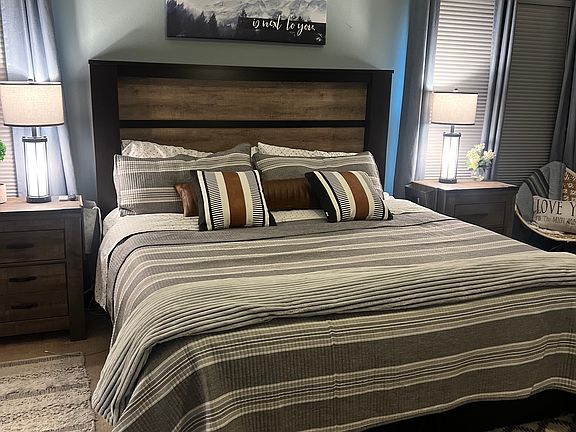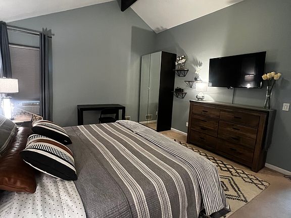 Beautiful luxurious and spacious master suite in a high end home complete with walk in closet and spa bath. Fully furnished. Pet friendly (dog). King bed with high end mattress and furnishings. In room - standing desk, Mini fridge, microwave, coffee maker, etc. High Speed Wi-Fi and utilities included. Shared entrance to the home with access to common areas of home to include Kitchen (fully stocked), Family Room, Breakfast dining room, Living room, formal dining room, back trex deck with patio furniture and BBQ. Fenced yard. Two other rented spaces in the house but with plenty of privacy. 2 laundry rooms in the home (main floor laundry for this space). Lots of past happy renters in this home including travel nurses, other travel healthcare, entrepreneurs, travel tech workers and travel teacher. Short term rental 30+ days, timeline negotiable, can be extended as requested and agreed to. Utilities and WiFi included in monthly rent Pet fee - Dog - $50/mo Pet Deposit - $300