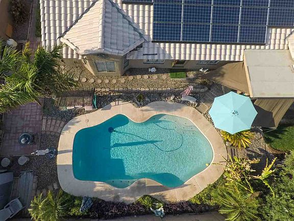 Beautiful 3 bedroom, 2 bathroom custom home located in Falls Ranch. Enjoy this backyard pool paradise complete with luscious greenery, a 3 car garage for extra parking, plus it is already equipped with solar. The original 207B four bedroom floor plan was customized to increase the size of the bedrooms & add storage space throughout the home. It was also upgraded with dual pane windows, country style windows in the bedrooms, upgraded insulation, and much more at the time of construction.