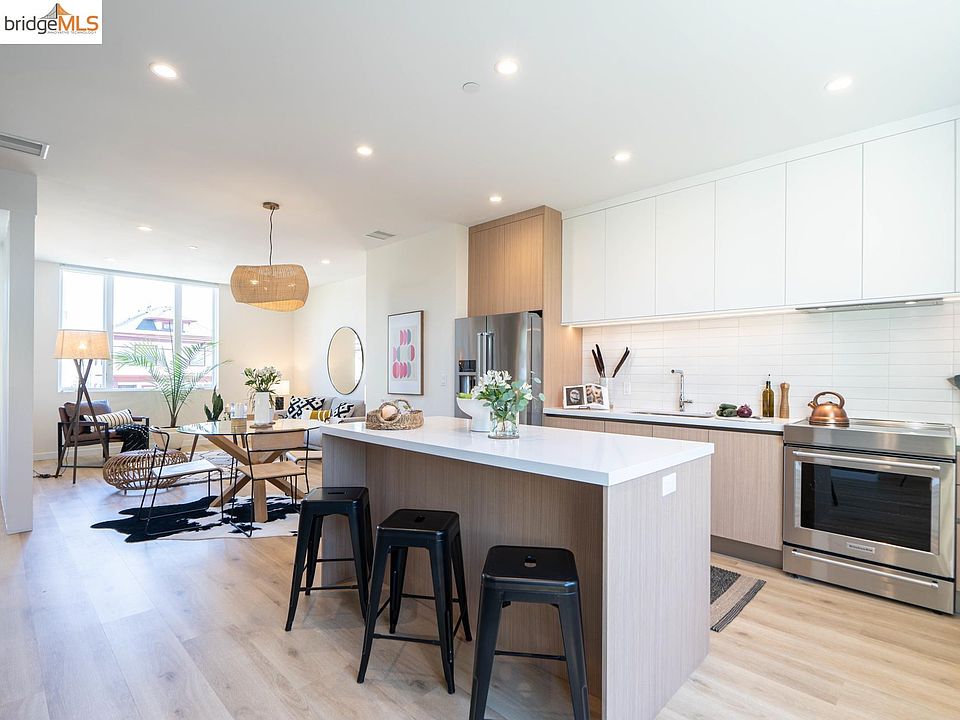 NO HOA! Brand new construction, Green Point Rated, this modern all electric single family home is stunning with three beds, and three baths perfectly dispersed across three levels. Located in North Oakland, near BART and trendy eateries, noted builder Workshop1 built this and 5 others from the ground up in 2022 as a small modern enclave. The main living area is set perfectly on the second floor and combines the living, dining and kitchen area in one open concept space. The minimalist modern kitchen includes sleek oak and white enamel cabinetry, a stainless steel suite of appliances, and a stunning center island. Moving up a level are two comfortable bedrooms, each accompanied by a contemporary ensuite bath and a laundry closet. On the ground floor, you will find the third bedroom with ensuite bath featuring sliding glass doors leading out to a private patio garden area.Easily accessible, the garage can also be found on this level. With solar panels, heating and air conditioning, private gated driveway, and many more amazing features this home is one not to miss. Streamline your life at 3847 West St. for the next generation of modern living.