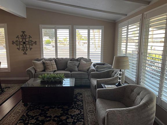 This home is beautifully updated with an open kitchen and dining area. Vaulted ceiling and dual pane windows with plantation shutters throughout allows natural lighting to brighten the rooms. The over sized laundry room is nice with additional storage cabinets for all the extra items. This home is completely drywalled and has upgraded doors to complete the interior warm feelings. This is a must see to appreciate the turnkey value. In addition, it has a wonderful mountain view, along with easy access to the golf course practice area for putting and pitching. Located within Palm Desert Greens Country Club, a 55+ community with a resturant on site as well as a pro shop, numerous clubs for socializing. In addition, our low HOA dues of $351 a month includes FREE GOLF, WI-FI, Cable TV and Trash pick. This is the best kept secret in the desert. Make an appointment today to come see this gorgeous home.