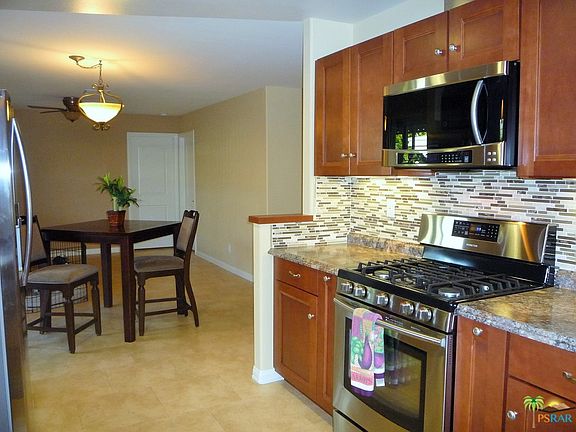 Renovated to the max. NEW water heater, NEW insulation & drywall, NEW dual paned low E windows, NEW copper wiring, NEW KOHLER soft-close toilets, NEW LED lighting, NEW Samsung Collection appliances. 15 SEER (seasonal energy efficiency ratio) 2 speed CARRIER heating/AC with up-sized duct work. Custom Cabinets with soft close in kitchen, dining room, bathrooms. Custom built-in side by side partner's desk, upgraded doors and window molding, upgraded carpet and eco-friendly vinyl flooring, brushed nickle door knobs and faucets, 5-person Sundance spa with Ozone System.See attached list. All this AND, wonderful views of the mountains from the well appointed, fully fenced private landscaped backyard. Custom pavers welcome you from the front walkway and continues throughout the patio. A fire pit and gas BBQ completes this heavenly yard. This was a huge renovation so move in and enjoy. 2008 Yamaha golf cart included. PDG is a 55+ community with free 18-hole golf