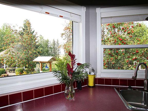 Manicured lawnsMature treesThoughtful floor planWalls of windowsPicturesque viewsVibrant foliagePlenty of cabinets