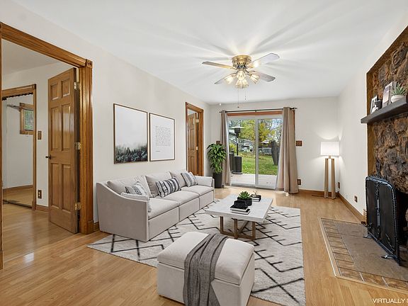Updated 2 bedroom home sitting on a large 3/4 acre wooded lot in Spring Grove. The bright kitchen features a new stone backsplash, new fridge, and beautiful oak cabinetry. Cozy up by the gas fireplace on those chilly nights or enjoy the very private back yard from your beautiful new deck. Recent updates include a fresh coat of paint throughout, new Trex Deck, newer roof, siding, rear sliding door, gutters, soffit & facia, and more. Oversized and heated 2 car detached garage, a huge shed with loft area and 50amps of power! Home sits on a total of 4 lots. Tax pins are:0134302013,0134302014,0134302015,0134302016