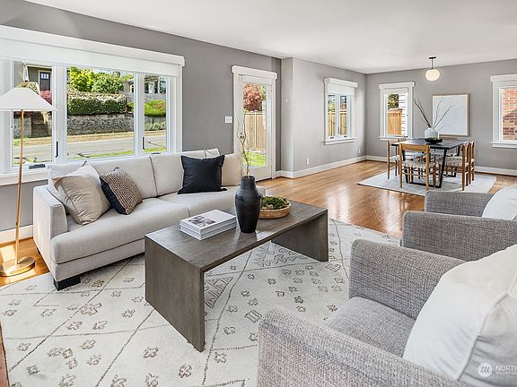 The perfect blend of timeless 1925 charm with modern systems and a cool aesthetic. Extensive remodel by reputable design build firm NEST includes Chef's kitchen w/ cement slab & gorgeous butcher block countertops, exposed lath walls, all new electrical and plumbing updates. Head upstairs to the primary suite with stunning views of downtown Seattle, Elliott Bay and Cascades. Enjoy a private view deck, attached bathroom w/ frameless shower/tub, heated floors & warming towel rack. Waterproofed daylight basement w/ built-in entertainment system, half bath & access to paver patio & fenced backyard. 1 car garage w/ convenient alley access (excellent DADU possibility). Ample storage throughout. Quick commutes + easy stroll to shop, eat & play.