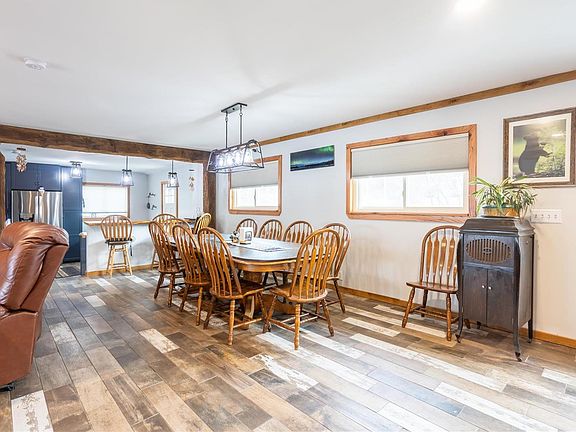 Welcome to your beautiful lakefront home!This home has been completely updated. This home is situated on a level large lot that backs to the lake. Pulling up you will see the 1-year-old roof, and solar panels. There are plenty of parking and a driveway that extends to the back of the home to the Large detached garage,RV Storage &Newly built covered dock.Making your way into the home, you will love the completely renovated kitchen w new 42in painted cabinets,wood like ceramic floor,stainless appliances, wood counter tops and stone wall, that is a large woodburning fireplace in the great room,There are new Andreson Doors,& windows throughout the main level w a double slider to the covered screens deck that extends the length of the home.There is a lrg primary w a primary/ main bath w lrg walk in shower and heated floors. The lower level features an office area/ sleeping area, a full bath w shower, family room w fireplace, and a kitchenette. There is a walk out LL the overlooks the lake