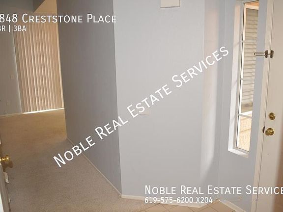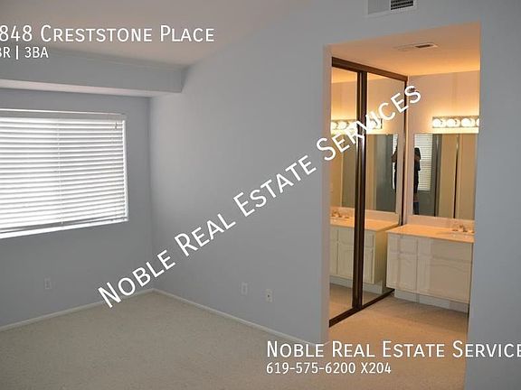 3848 Creststone Pl., San Diego, CA, 92130 3395.00 Dogs ok Cats OK Pets OK. Breed restrictions apply. No Yes PLEASE DO NOT DISTURB THE CURRENT TENANT SCHEDULE ON OUR WEBSITE Deposit: $3395 **On Approved Credit** Gorgeous 2-Bed, 2.5-Bath Condo! This stunning home is a must-seespacious, bright, and designed for comfort. Enjoy an open layout, a private 2-car garage, and the convenience of trash service included! With modern finishes, a clean and inviting atmosphere, and plenty of storage, this condo has everything you've been looking for. Perfectly located near freeways, schools, and shopping, plus just minutes from the beach! You'll also be close to parks, hiking trails, a shopping mall, golf course, and the Del Mar Fairgroundsmaking this home the perfect blend of comfort, style, and convenience. Don't miss the chance to fall in love with your new home! (**If no showtimes are available, don't worry! Go ahead and submit your info and our automated system will let you know when showtimes become available). Also, please be sure to click on the 'Apply Now' button to see all of our requirements and how we work! JG 08/19/25 (eb) No Noble Real Estate Services 1371 Presioca St. Spring Valley CA 91977 Yolanda, Emily, or Alex 2025/9/30 Appliances Balcony/Patio/Deck Bathroom Blinds Cabinets Carpeted Floors Cat Friendly Closets Garage Garage Attached Kitchen Parking Stove W/D In Unit Walk In Closets Washer And Dryer Connections Washer And Dryer Unit