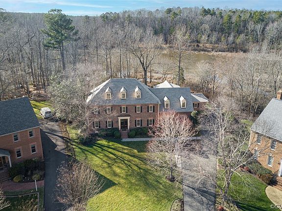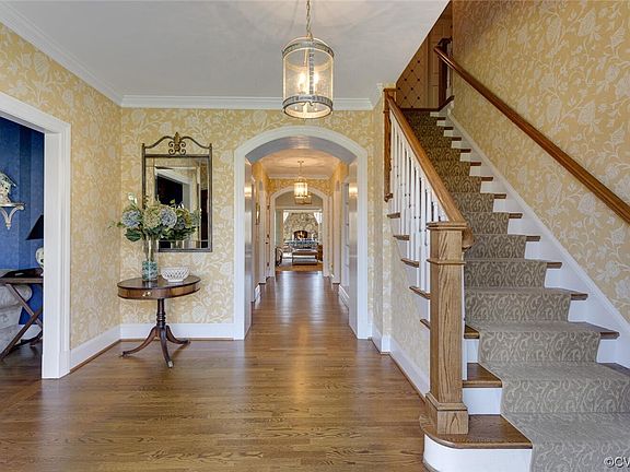 Stunning water views of Tuckahoe Creek catch your eye the moment you enter this home sited on 1.3 acres in FoxHall. In 2009, architect Dan Ensminger remodeled and enlarged the first floor to include a center gallery with commanding views of the creek as you enter the foyer. Additionally, a family room with a soaring ceiling plus billiard room, informal dining and first floor Primary suite were added, all with unparalleled views of the water! Classic Kitchens of Virgina remodeled the kitchen boasting the finest of appointments! The custom kitchen is designed w/ a large island, two Miele dishwashers, drawer microwave, Sub Zero paneled refrigerator, warming drawer, double wall ovens, wine cooler, wet bar with ice maker and lighted display cabinets. Notable accents include intricate millwork such as paneled doorways and barreled ceiling not to mention custom cabinetry in the family room, retreat, informal dining and center hallway. The first-floor primary bedroom has a large bathroom with picture window overlooking the wetlands & two custom closets. The 2nd floor features a second primary bedroom suite plus 5 additional bedrooms and 3 full baths including one ensuite. The third floor offers a recreation/media room with tray ceiling, window seat storage and a full bathroom plus an attic for storage. Entertaining is a delight on the loggia accented with bluestone and stone fireplace. There is a lower terrace w/ a second fireplace encased by a brick wall. Irrigation system and beautiful outside lighting. Bonus features include hardwoods on the 1st/ 2nd floors , 2 staircases, a whole house water filtration system, large garage with built in shelving/ loft and additional parking spaces finishes this amazing property. Fox Hall is a vibrant neighborhood w/ recreational amenities including a swimming pool, soccer, pickleball, clubhouse, and playground, etc. Best schools in Henrico County and is close to Short Pump eateries and shopping. Easy access to I64 and 288. Why was this home not featured in ARCHITECTURAL DIGEST?