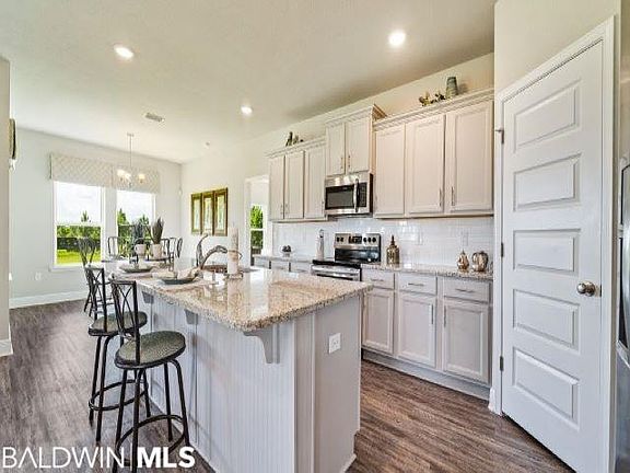 Welcome to Aventura located in Gulf Shores. This Camden plan features four bedrooms, three and half bathrooms, and a bonus room with a wet bar. Luxury vinyl throughout, granite in the kitchen and bathroom, beautiful cabinetry with soft close door feature, and a large island open to the great room. The primary suite features a soaking tub, separate tile shower, double vanity sinks, a large walk in closet. Additional features include a game room/study with a mini fridge and wet bar. This home also features our Home is connected smart home technology, which includes a control panel, doorbell,, smart code lock, and thermostat. All controlled by one app. Home is being built to Gold Fortified standards. *All dimensions and square footage measurements are approximate only.**Pictures may be of similar, but not necessarily of subject property, including interior and exterior colors.** Estimated completion is April 2023