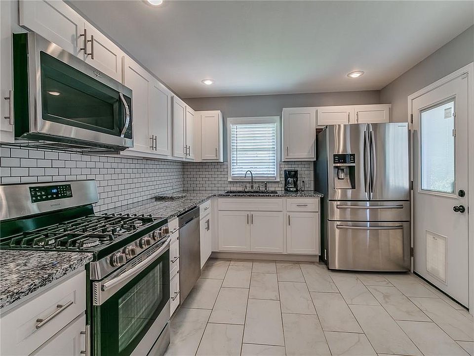This Beautifully remodeled home has contemporary colors, a subway tile back splash in the kitchen, stainless steel appliances, granite counter tops and has completely remodeled bathrooms. The hardwood floors have been restored, all 3 bedrooms are good size and the back bedroom has a half bath for your convenience. The large backyard is fully fenced for privacy. Washer and Dryer hook ups are located in the attached garage. This home has a current tenant (lease is up at the end of April) Seller making final decisions on Sunday at 7.